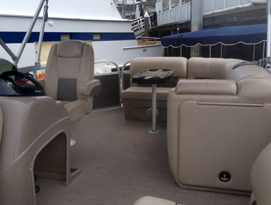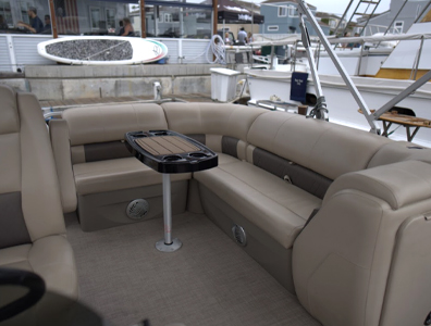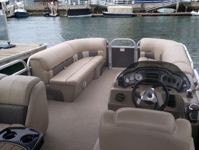Our Pontoon Boats can accommodate up to 10 passengers, depending on the boat size. They are very spacious and there is plenty of room to bring the whole family along, including pets.
