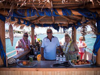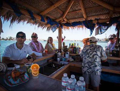 Enjoy your Tiki Boat Cruise Tour with a private bartender who will meet and greet your guests with a welcome cocktail, then enjoy free – flowing libations throughout the two hour cruise. ($300.00)