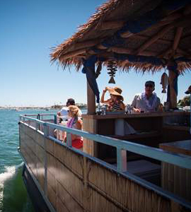 Relax and enjoy a casual tour around Newport Harbor on an exotic, trendy and luxurious 30ft Pontoon w/ Tiki Bar.